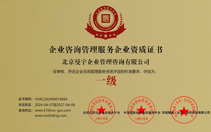 北京曼宇企业管理咨询有限公司是经相关部门批准成立的专业化企业管理咨询、认证咨询机构,目前业务已覆盖辽宁、吉林、黑龙江、内蒙古、河北、陕西、河南、山东、新疆、江苏、四川、广东、广西、海南、云南、北京、天津、上海等省、市、自治区。曾为全国机械、电子、化工、纺织、计算 机软件、食品等各行业的制造商、贸易商和发展商等企业成功提供了我们的管理咨询及策划认证服务。